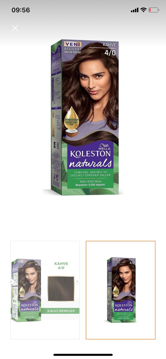Wella Koleston Naturals kalıcı krem saç boyası, yumuşak ve bakımlı formülüyle %100 gri kapatır, doğal kahve tonları sunar.