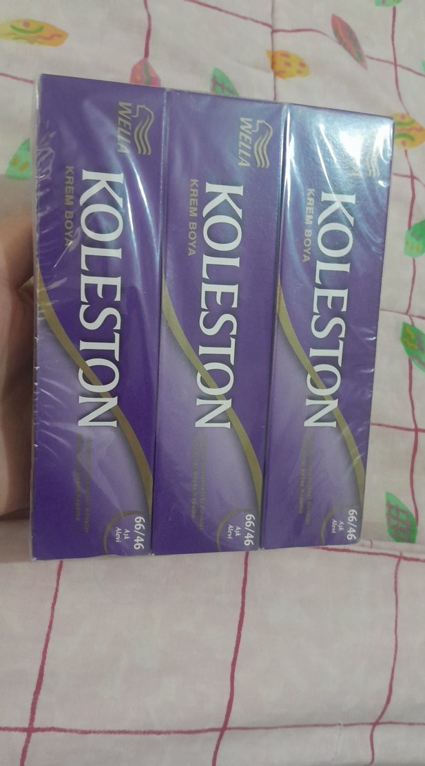 Wella Koleston 66/46 numaralı saç boyası, krem formunda ve yoğun renk sağlar. Mor kutuda sunulur.