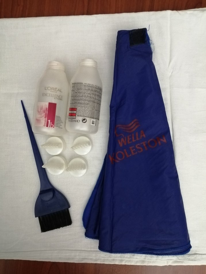 Fırça ve pelerin kullanıldı. 2 plastik şişe, 2 aparat, 20 eldiven kullanılmadı. Hepsi temiz sağlam. İadesi yoktur. Göründüğü gibidir. Wella Koleston saç boyası seti, geliştirici şişeleri, karıştırma fırçası ve koruyucu pelerin içerir. ️#wella #l'oreal