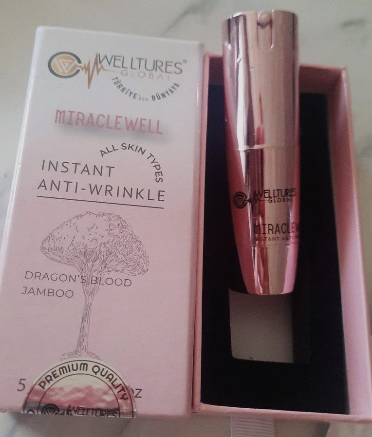 Welltures MiracleWell, tüm cilt tiplerine uygun, anında kırışıklık karşıtı serumdur. Ejderha kanı ve bambu özleri içerir.