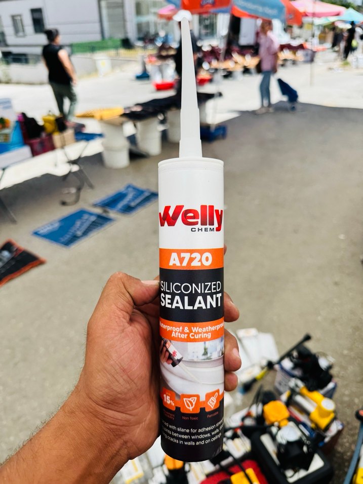 Welly A720, su geçirmez ve hava koşullarına dayanıklı beyaz silikonlu mastiktir. ️