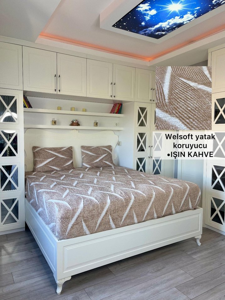 Welsoft yatak koruyucu, açık kahverengi renkte yumuşak ve sıcak bir dokuya sahiptir. Yatağınızı korumak için tasarlanmıştır ve desensiz sade bir görünüme sahiptir. ️