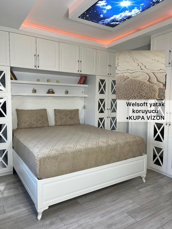 Welsoft kumaştan yapılmış, yatak koruyucu, doğal bej tonunda, hafif dokulu deseni ile yatağınızı korur ve rahatlık sağlar. ️