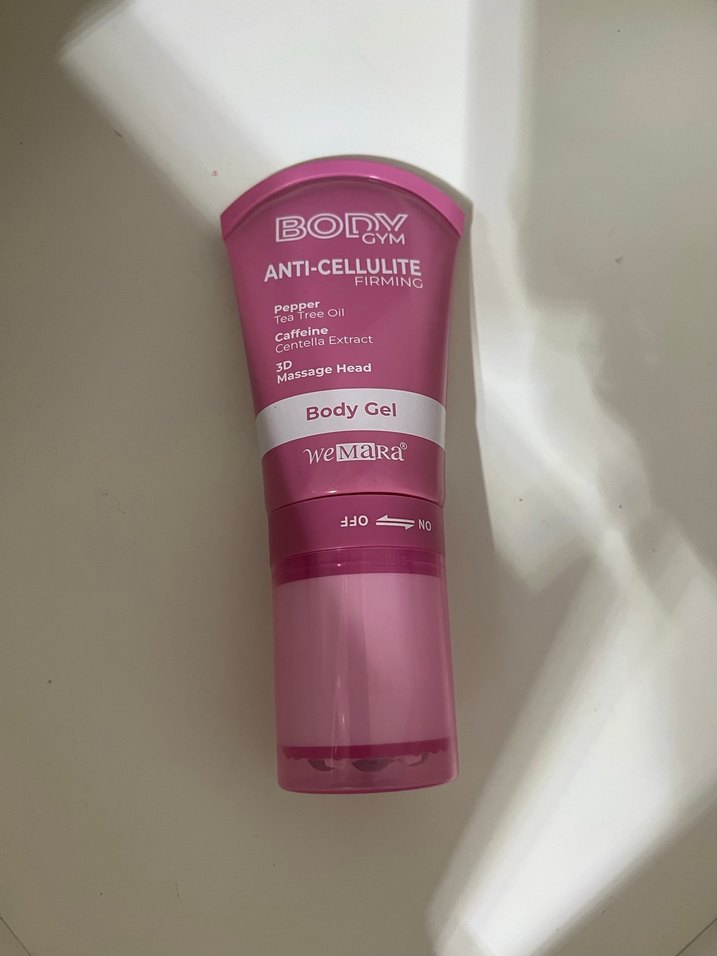 WeMara Anti-Cellulite Vücut Jeli, biber, çay ağacı yağı, kafein ve centella özleri içerir. 3D masaj başlığı ile sıkılaştırıcı etki sağlar.