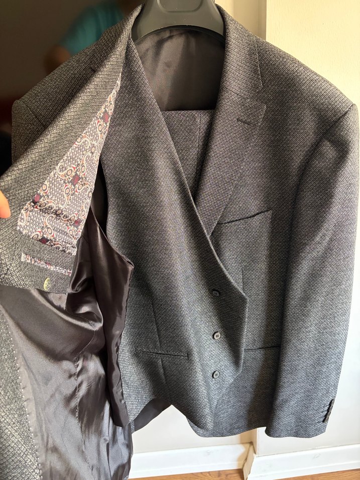 Wenitto - siyah- Gri renkli, regular fit kesime sahip erkek takımı; ceket, pantolon ve düğmeli kolsuz yelekten oluşur. Ofis kullanımı için uygundur. ️ Beden : 58-6 Drop 1 kez giyildi. Mağazadan aldığımız gibi yendien farksızdır. Beden değişikliğinden satıştadır.