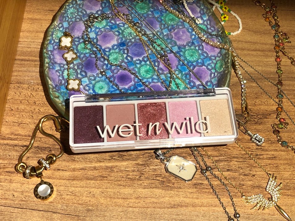 Wet n Wild göz farı paleti, derin erik, yumuşak pembe ve parıltılı gül tonları gibi canlı ve açık renk seçenekleri sunar. çok az kullanıldı