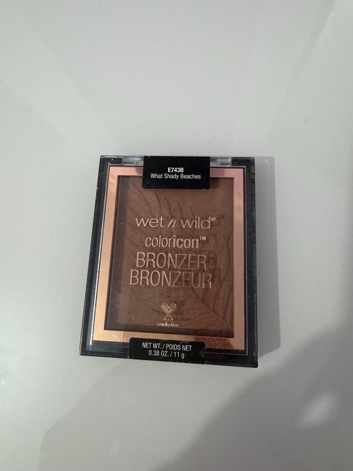 Wet n Wild Coloricon bronzer, koyu kahverengi tonunda. Doğal bronzluk için kompakt pudra. Net ağırlık 11 g.