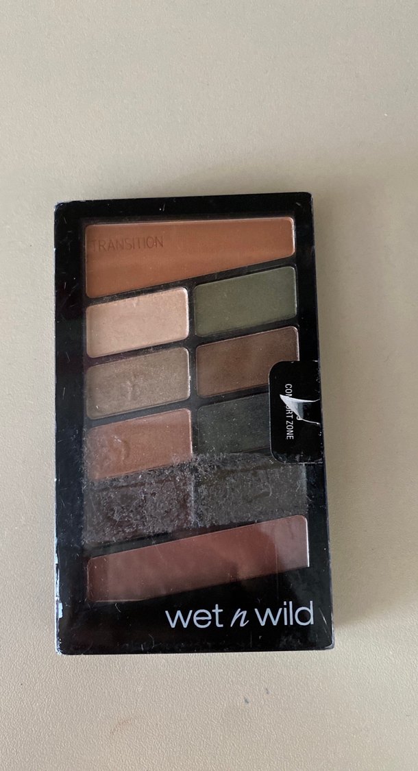 Wet n Wild göz farı paleti, çeşitli koyu ve bej tonlarıyla çok yönlü makyaj için uygundur. 1 kez kullanıldı üstündekiler bant izi