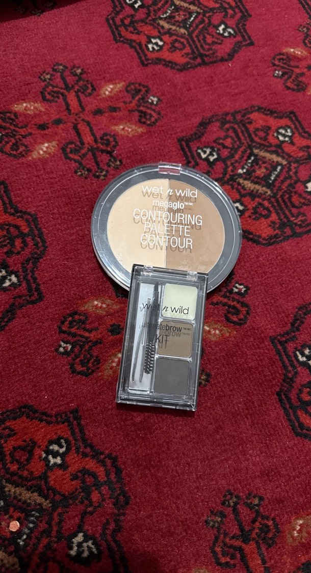 Wet n Wild markasına ait, kamel ve gri tonlarında kontür paleti ile kaş kiti. Palet kontür ve aydınlatma için uygun, kaş kiti ise doğal kaş tanımı sağlar.