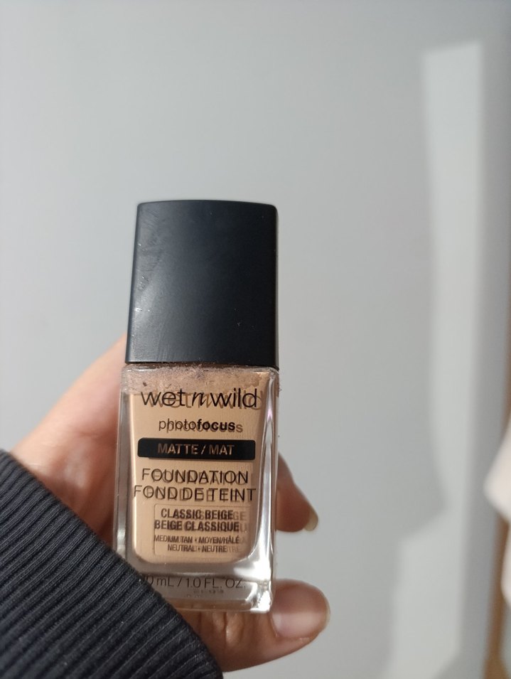 Wet n Wild photofocus mat bitişli fondöten, Classic Beige tonunda. Orta kapatıcılık ve doğal görünüm sağlar. ️Bir kez abimin düğününde kullandım.