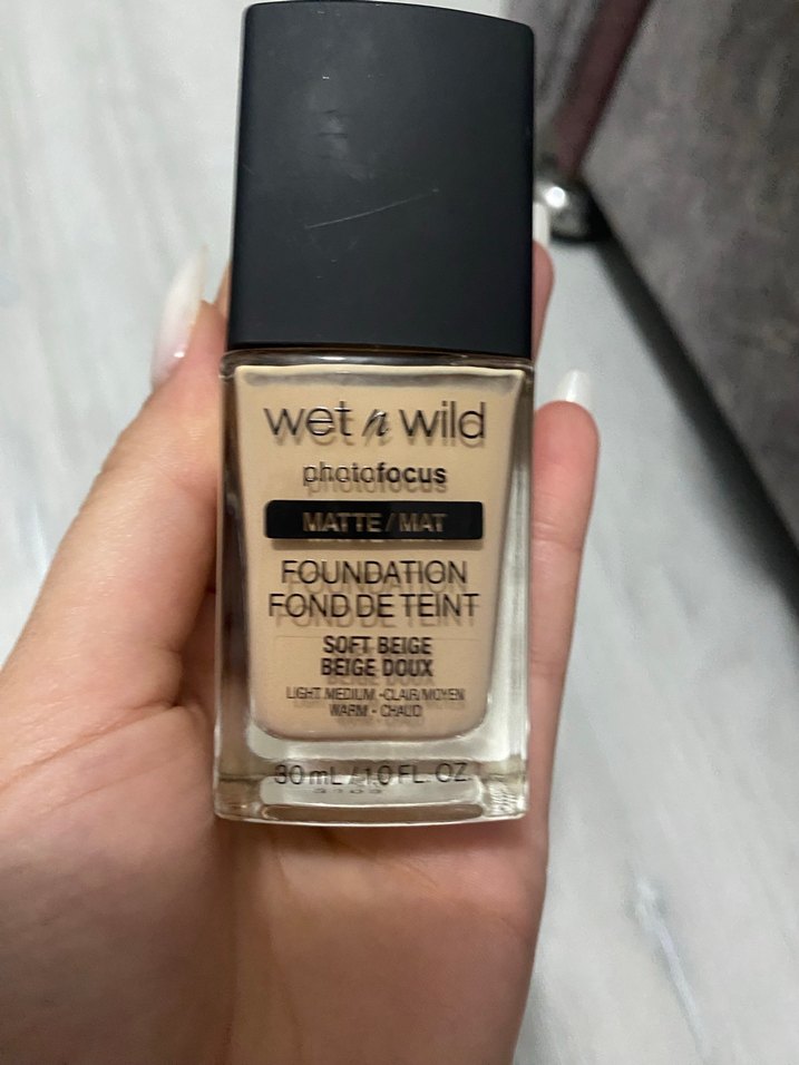 Wet n Wild PhotoFocus Mat fondöten, Soft Beige rengiyle hafif ve mat kapatıcılık sağlar. 30 ml şişede, açık-orta cilt tonlarına uygundur.