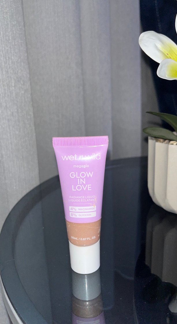 Wet n Wild Megaglo sıvı fondöten, %4 niasinamid ve %8 gliserin içerir, açık bej tonuyla cilde ışıltılı bir görünüm sağlar. ✨