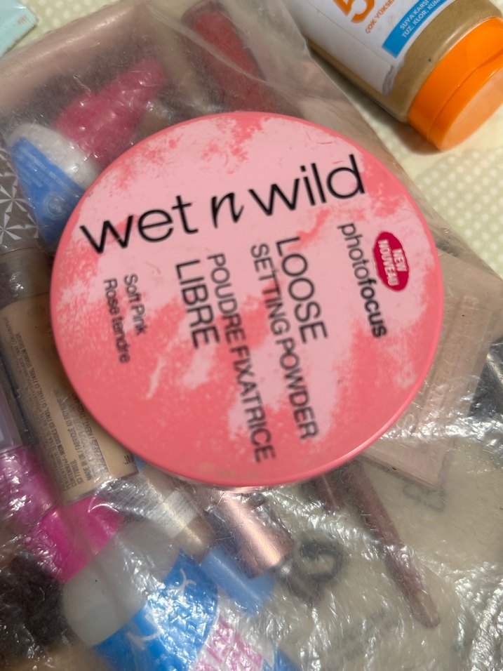 Wet n Wild markasına ait yumuşak pastel pembe renkte gevşek pudra. Makyajı sabitleyip hafif bir bitiş sağlar. Yarısı var