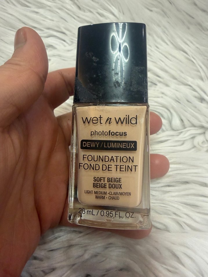 Wet n Wild Photofocus fondöten, Soft Beige renginde, 28 mL şişede, ışıltılı ve sıcak tonlu bir bitiş sağlar.