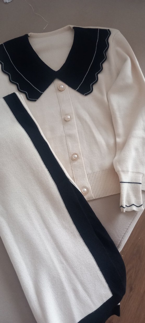 Düğmeli ön kısmı ve yakasında çentikli yaka bulunan beyaz kadın pamuk kazak. Uzun kollu, normal kesim ve klasik şıklık için idealdir. Paris tarzı normcore stilinde, günlük kullanıma uygun.