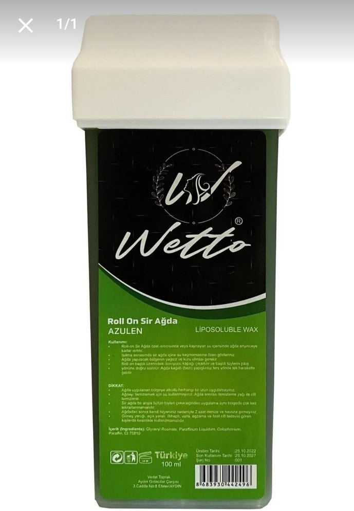 Wetto Roll On Sir Ağda Azulen, etkili ve kolay uygulanabilir liposoluble ağda ürünü. Türkiye üretimi, cildi pürüzsüz bırakır. iki tane mevcut bir tanesi çok az kullanılmış