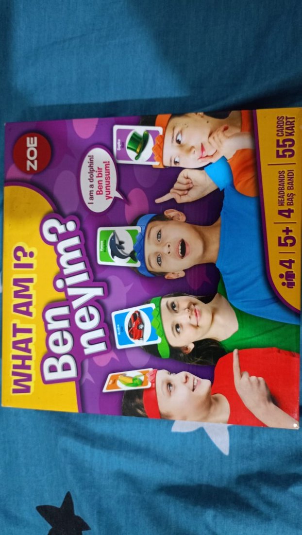 What Am I? Ben Neyim? kart oyunu 55 kart ve 4 baş bant içerir. 5 yaş ve üzeri oyuncular için karakter tahmin etme oyunu.