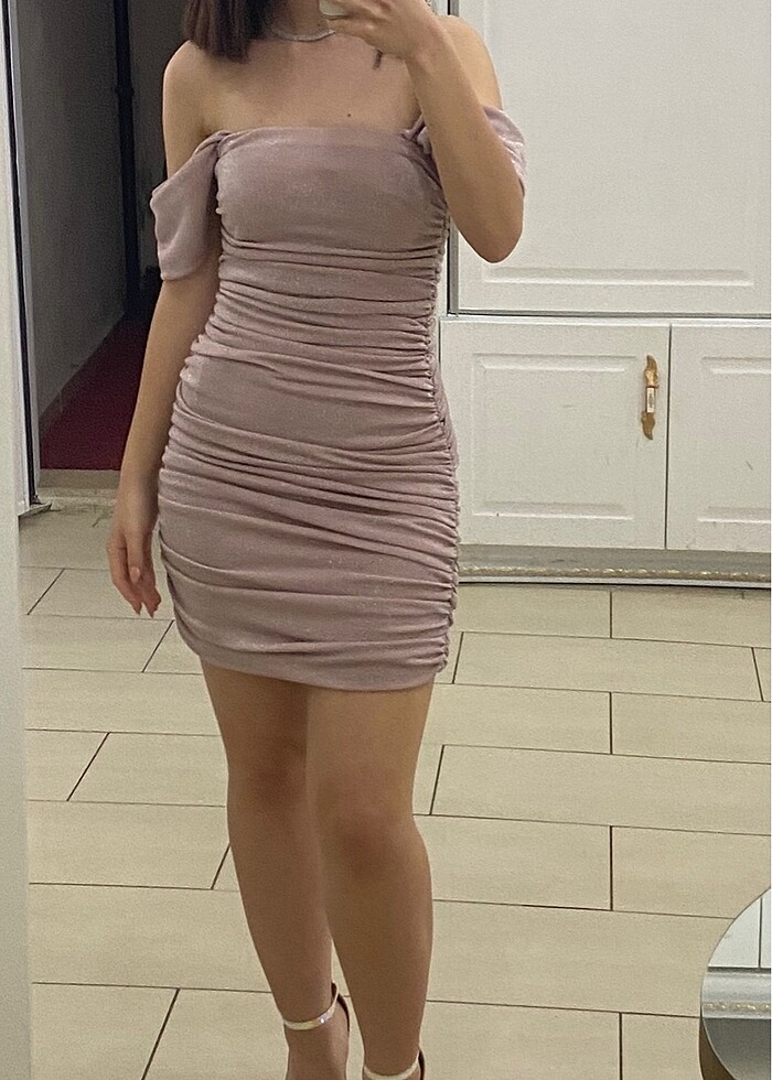 Sadece 1 kere giydim drapelidir 36 bedene de uygun simli parlak uçuk pembe rengindedir yırtık deforme yoktur Whenever companyden aldım