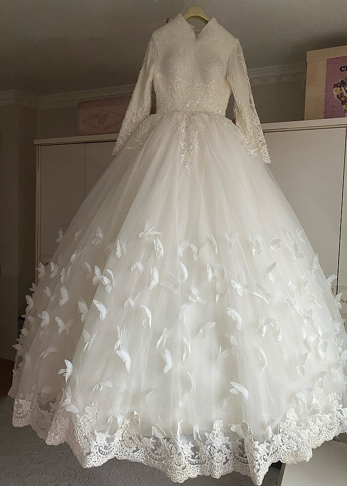 Gelinlik 36(36-38-40) beden uyumlu arkası iple ayarlanabilir kelebek detaylı kuru temizleme yapılmamıştır fiyatı uygun tuttum