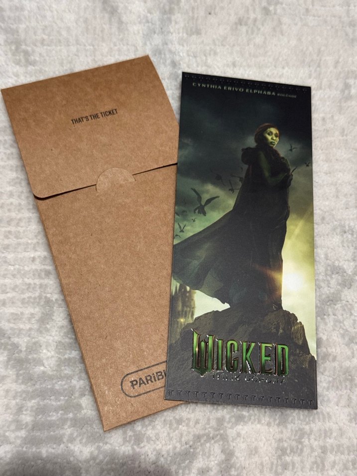 Wicked:iyilik uğruna sinemasına gidenlere verilen özel bilettir artık verilmiyor,herhangi bir hasarı yoktur almadan önce lütfen yazınız göründüğü gibi kartonla gelir Fiyatı anlamında emin değilim ️’ta daha pahalıya satıyorlar tekliflere açığım