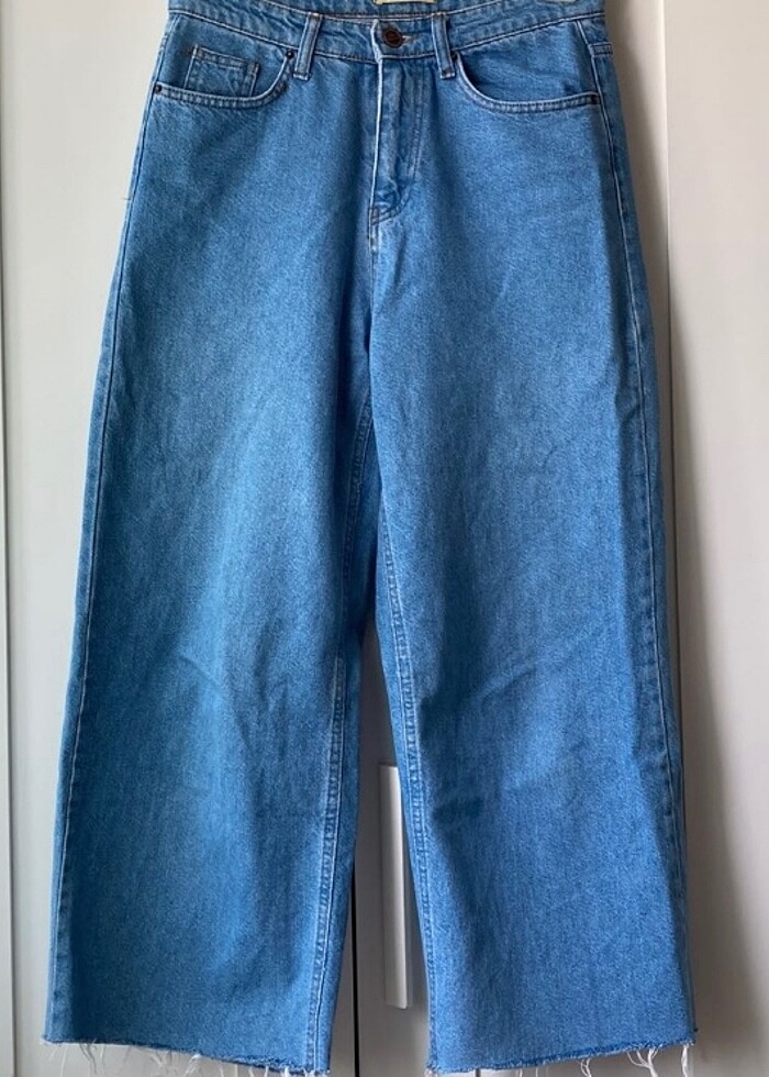 Paçası püsküllü wide leg. Midi kot pantolon boy 90cm bel 37cm basen 47cm