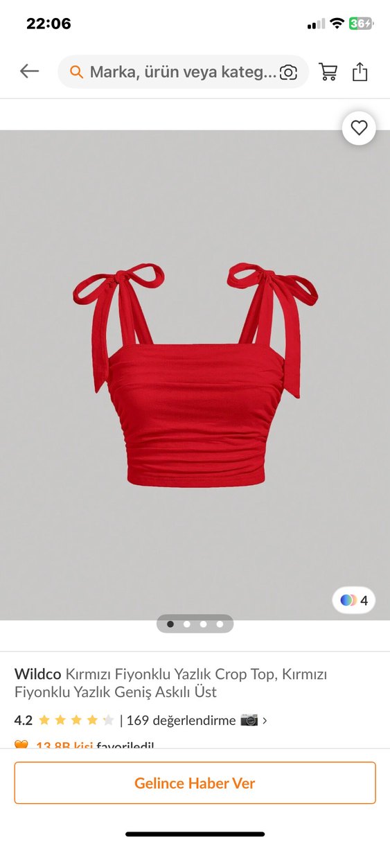 Fiyonklu askıları ve pileli detayları olan kırmızı, kısa kesim bustiyer. Sadece bir kez kullanıldı