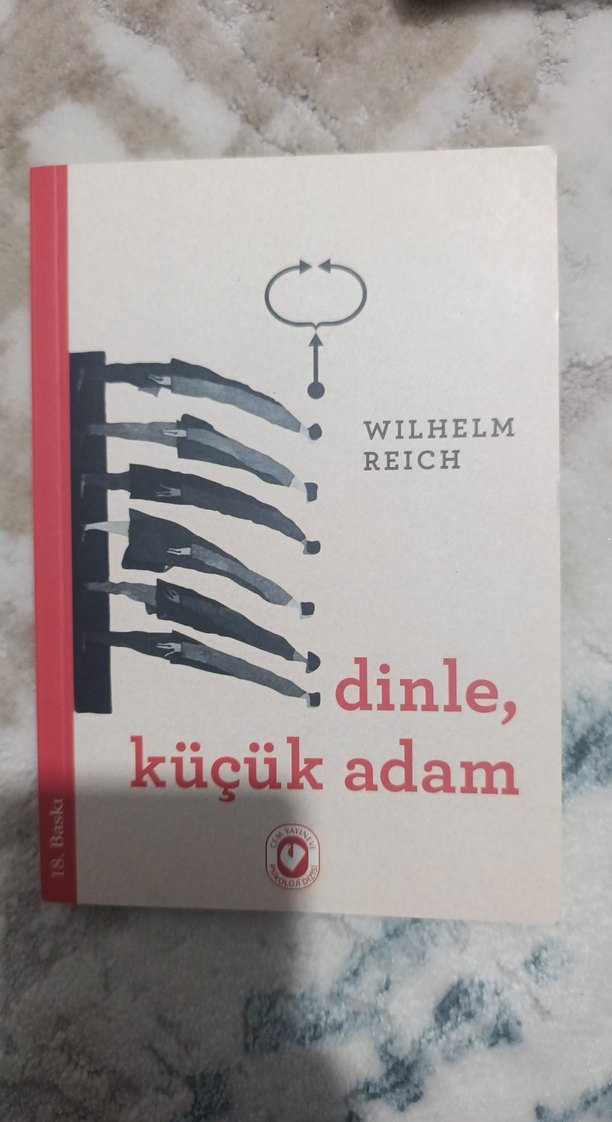 Wilhelm Reich'in "Dinle, Küçük Adam" adlı romanı, sosyal ve psikolojik temaları işler. Minimalist kapak tasarımı ve sembolik görseller içerir.