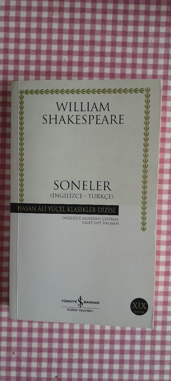 William Shakespeare'in soneleri İngilizce ve Türkçe olarak, Talat Sait Halman tarafından çevrildi. Hasan Ali Yücel Klasikler Dizisi'nden.