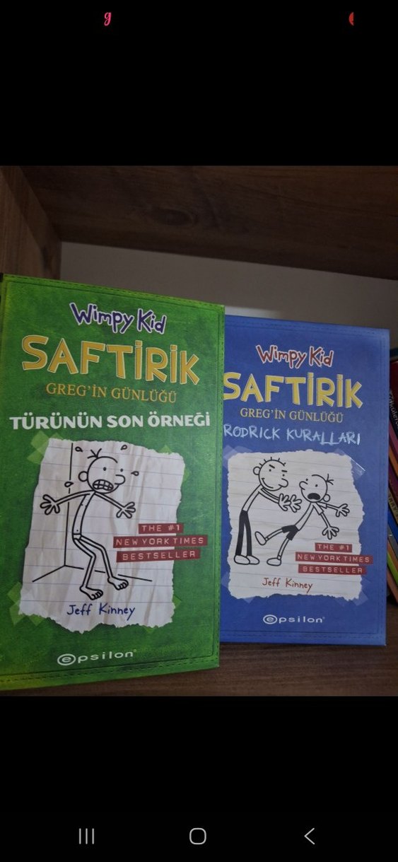 Jeff Kinney'nin Wimpy Kid serisinden 'Saftirik Greg'in Günlüğü: Türünün Son Örneği' ve 'Rodrick Kuralları' adlı iki kitap. Her ikisi de New York Times bestseller'ı . IKISI 350tl
