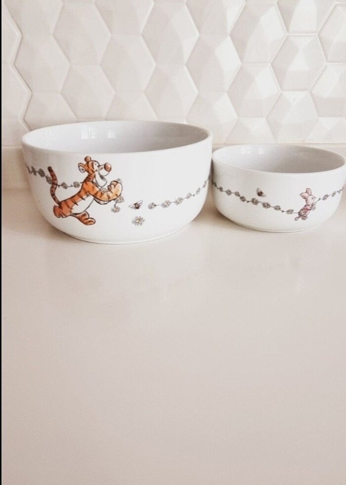 Disney winnie the pooh'un arkadaşları Tigger ve piglet 2'li kase takım. Tiggerlı büyük kasenin çapı 17',5 derinliği 8 cm. Pigletli küçük kasenin çapı 13,5 derinliği 6 cm.