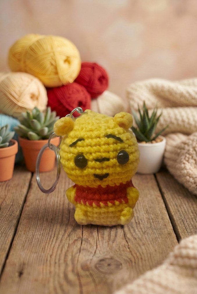 Aksesuarlarında abartıdan kaçınanlar için harika bir detay! Bu minik Winnie figürü, sadece 2,5 cm'lik boyutuyla incelikli bir şıklık sunar. #amigurumi #anahtarlık #örgüoyuncak #hediyelik #handmade #elemeği #çantasüsü #pooh #civciv #balina