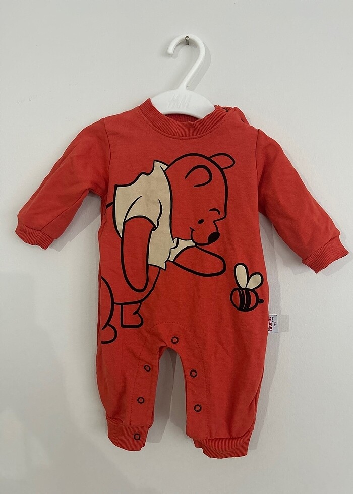 Etiket bilgileri: by murat baby Çok rahat, sevimli bir tulum. Renk: kiremit (benim çektiğim fotoğraflar daha iyi gösteriyor) Beden: 3 ay Uni Baby deterjan (parfümsüz, hipoalerjeniktir) kullanarak 40 derecede yıkandı. Herhangi leke, yırtık vb. YOK! Evcil hayvan olmayan bir evde kullanıldı.