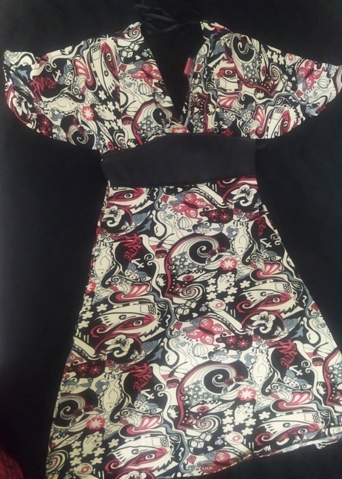 Desenli belinde saten bantla birleşen şık elbise Size farklılık yaratacaktır..