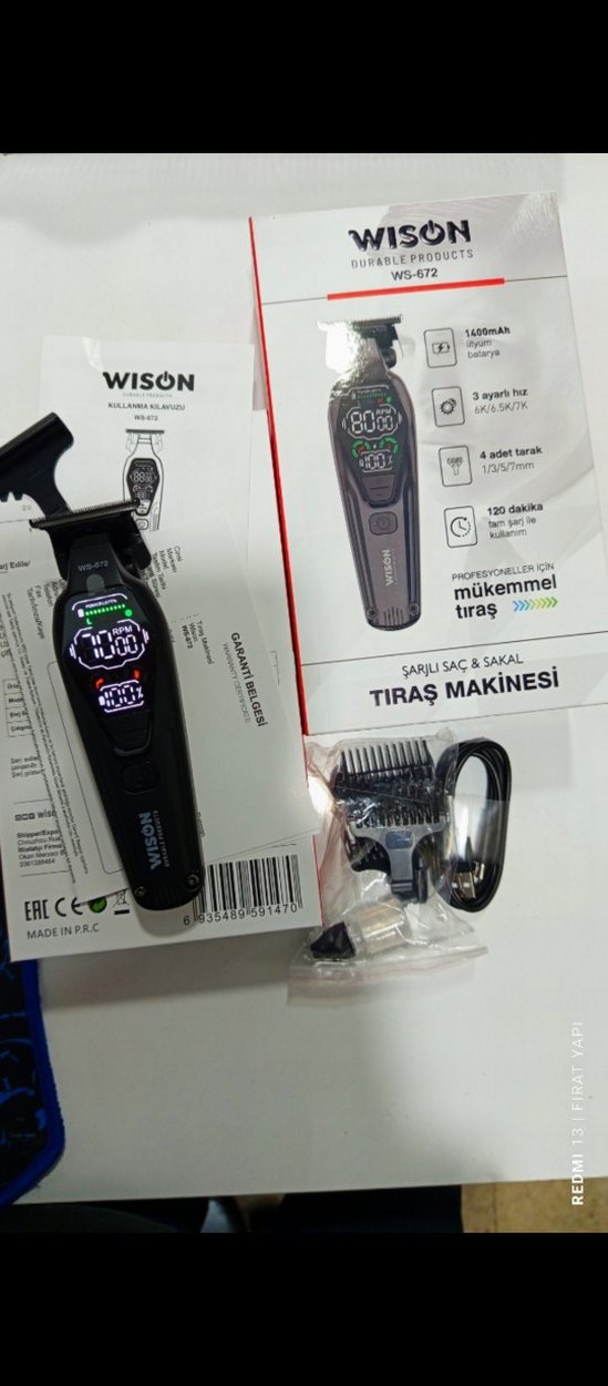 Wison profesyonel Traş makinesi saç + sakal + Çizik için kullanıma uygundur 2 Sene garantili sıfır kesim çizgi düzeltme Dijital ekranlı Wison şarjlı saç ve sakal tıraş makinesi, 1400mAh batarya, 3 hız ayarı ve 4 adet tarak (1,3,5,7mm) ile 120 dakika kullanım sunar. Profesyonel tıraş için uygundur. ⚡ sıfır ürün profesyonel Traş makinesi