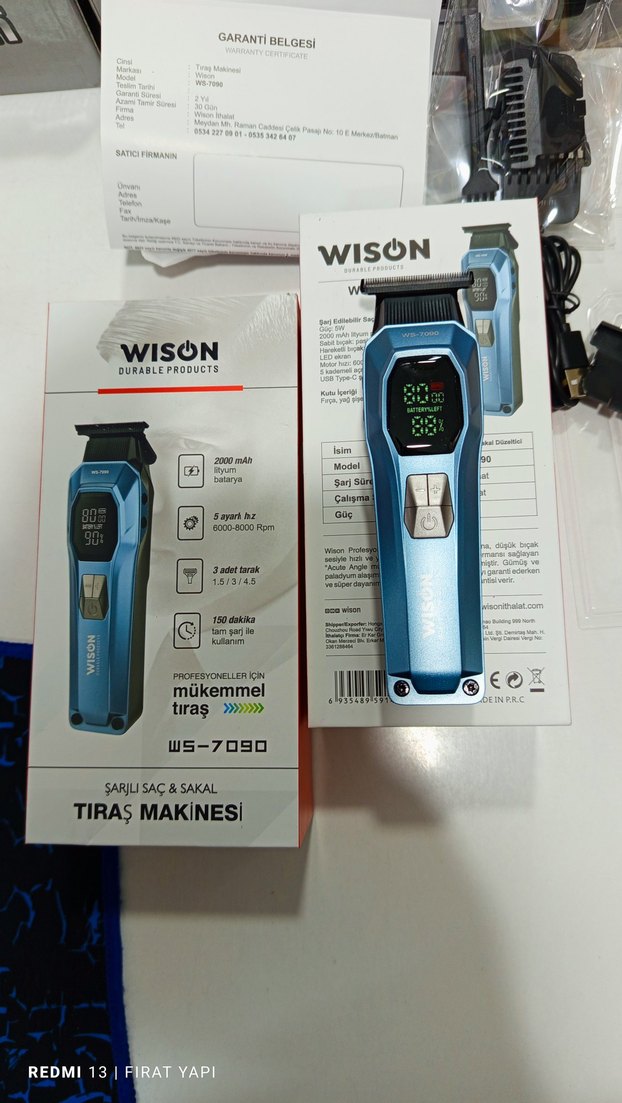 profesyonel traş makinesi Dijital ekran Wison marka 2 sene garantili Sıfır kesim yapar ⚡ WISON W5-7090, 2000 mAh batarya ve 6000-8000 RPM motor hızına sahip şarjlı saç ve sakal tıraş makinesidir. 3 farklı kesim ayarı / profesyonel sıfır ürün