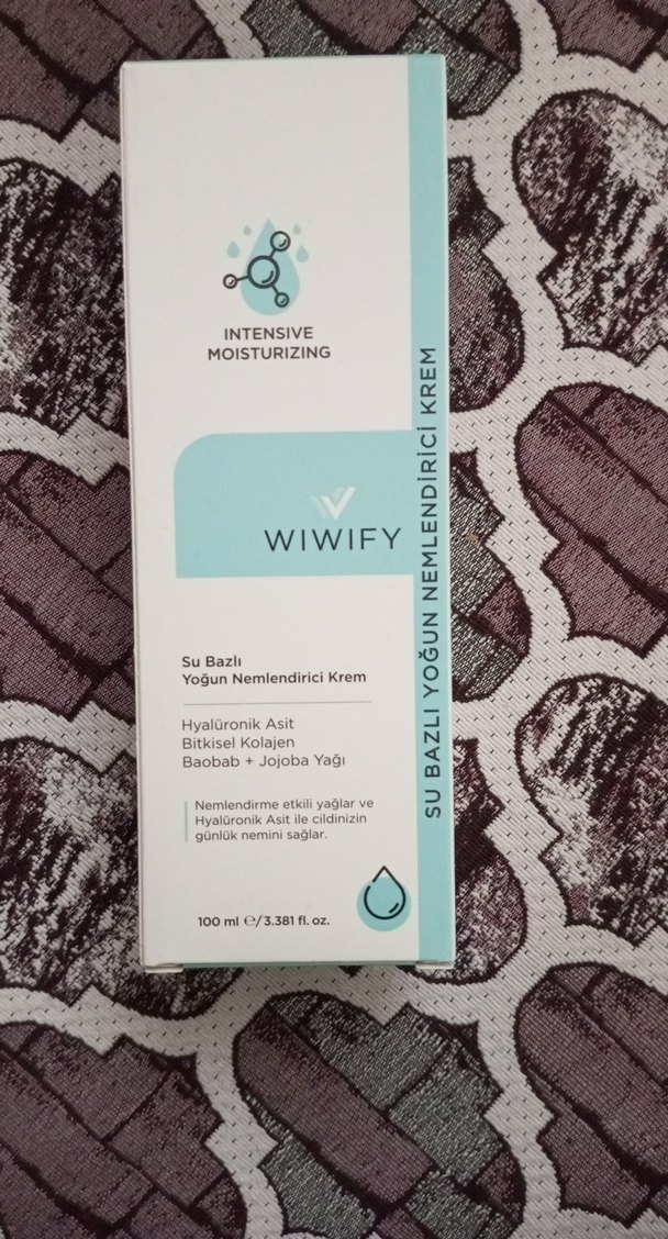 Wiwify su bazlı yoğun nemlendirici krem, hyalüronik asit, bitkisel kolajen, baobab ve jojoba yağları içerir, cildin günlük nemini sağlar.