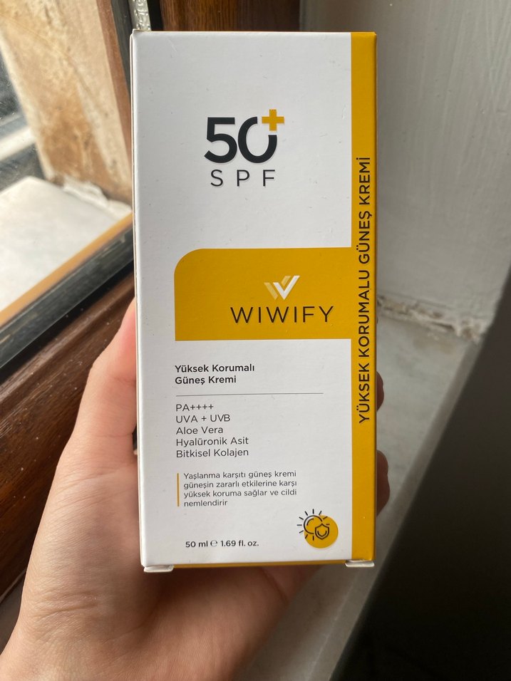 Wiwify SPF 50 güneş kremi, UVA+UVB filtreleri, aloe vera, hyaluronik asit ve bitkisel kolajen ile cildi korur ve nemlendirir. PA++++ derecesi ile yüksek koruma sağlar. Yeni hiç açılmadı ve üzerinde son tarih de bulunmakta