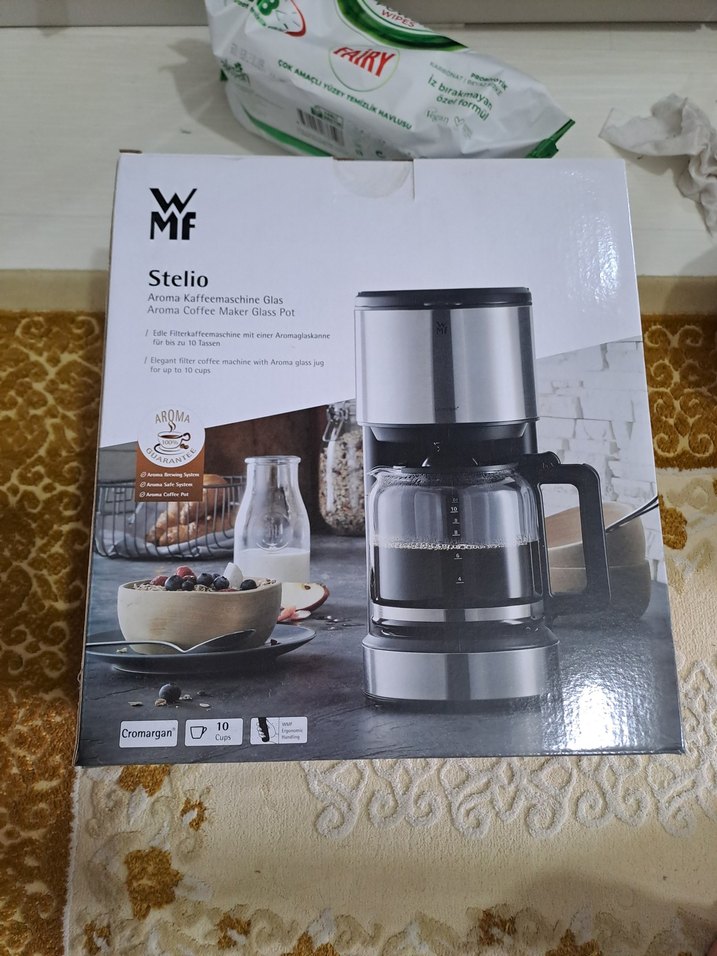 WMF Stelio kahve makinesi, aroma cam sürahisi ve gri paslanmaz çelik gövdesi ile 10 fincan kapasiteye sahiptir. ☕ sıfır hic kullanilmadi paketi acilmadi.