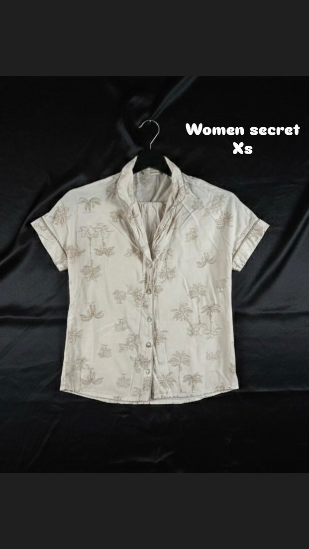 Bej renkli, keten kumaştan yapılmış kısa kollu, düğmeli ve yakalı gömlek. Mini boy ve bol kesim, günlük rahat sokak stili için uygun. Desenli ve XS beden.