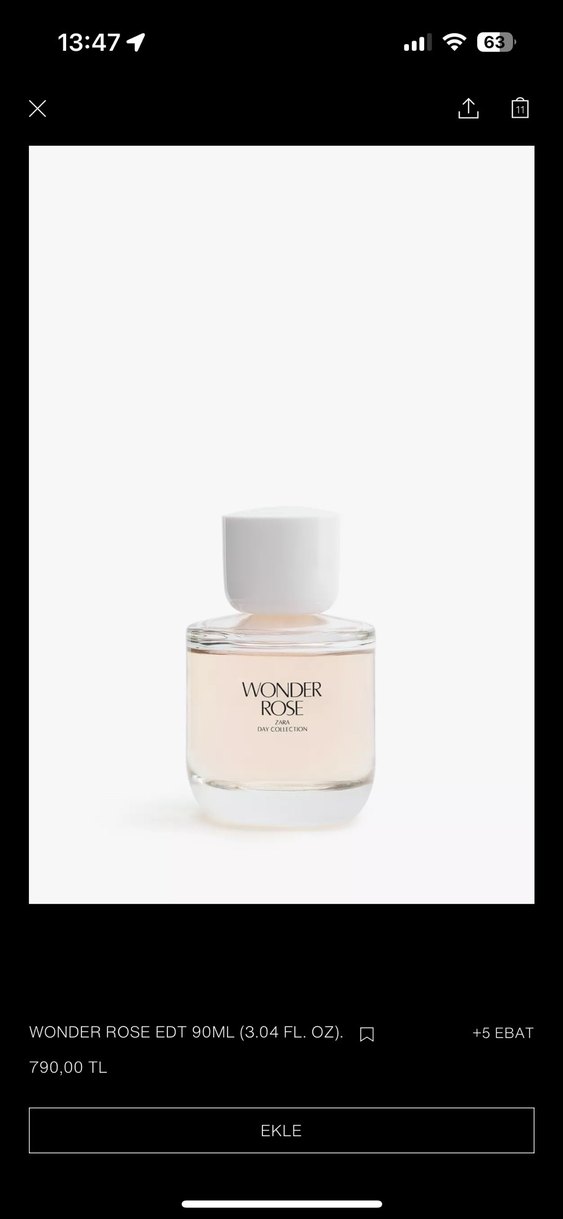 Wonder Rose kadın parfümü, gül notalarıyla zarif bir çiçeksi koku sunar. Şeffaf cam şişede beyaz kapaklıdır.