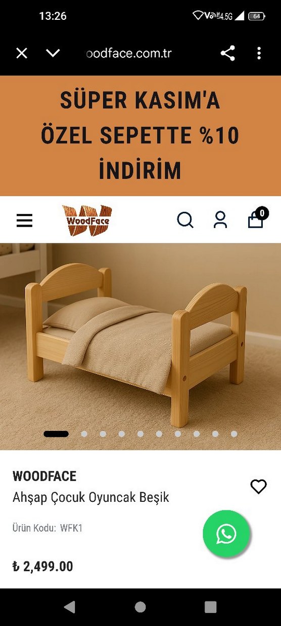 WoodFace markasının bej pastel tonlarda, ahşap malzemeden yapılmış sağlam ve sade çocuk oyuncak beşiği. Pürüzsüz yüzey ve kompakt boyut içerir. ️