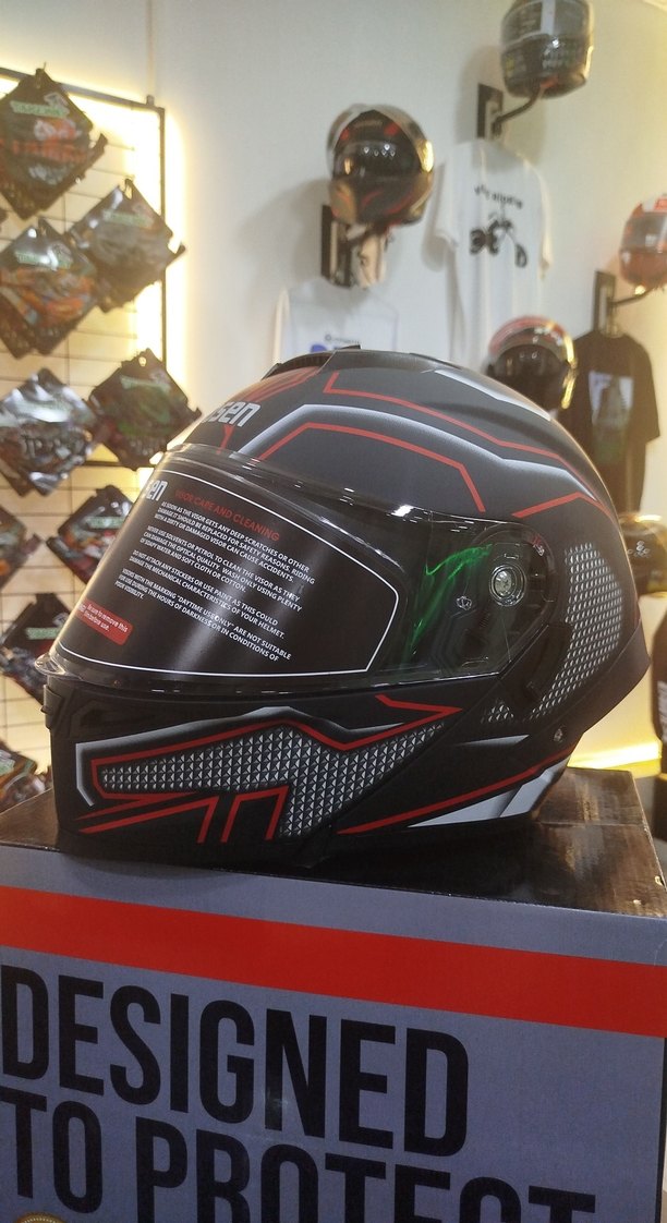 Wosen çene açılır Siyah Desenli Biker Motosiklet Kaskı L beden