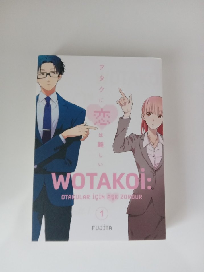 Fujita'nın WOTAKOI: Otakular İçin Aşk Zordur 1. cildi, iş kıyafetli karakterlerle otaku kültüründe aşk temasını işliyor. sararmalar vardır.