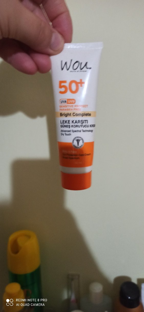 Wou Bright Complete SPF 50+ güneş koruyucu krem, UVA ve UVB ışınlarına karşı gelişmiş koruma sağlar. Leke karşıtı ve paraben içermez. ☀️