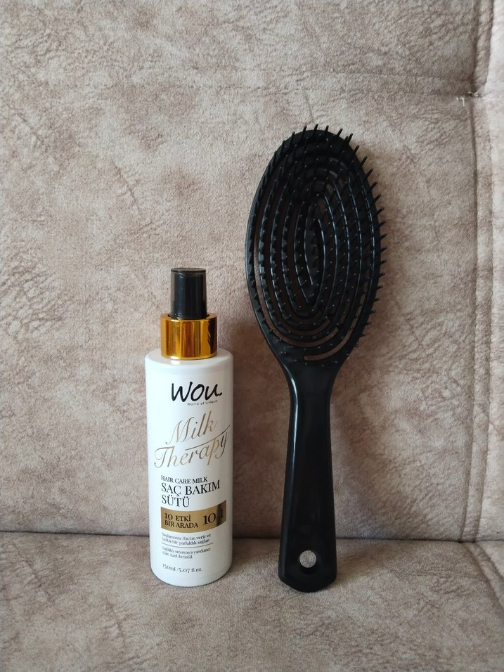 Wou Milk Therapy saç bakım sütü ve siyah saç fırçası ile saçlarınızı kolayca tarayabilir ve Saçlarınıza hacim ve parlaklık verir,sağlıklı uzamamya yardımcı olur nemlendirir