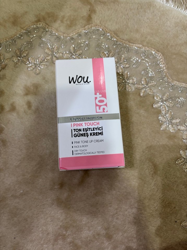 Wou Pink Touch yüz için SPF 50+ güneş kremi, ton eşitleyici ve kuru dokunuş özelliğine sahiptir. Dermatolojik olarak test edilmiştir.