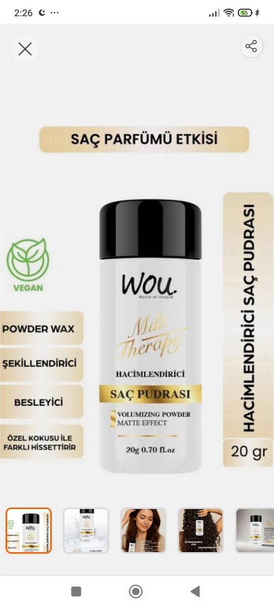 WOU Vegan hacimlendirici saç pudrası, mat bir görünüm ve özel kokusu ile saçı besler, şekillendirir ve hacim kazandırır. 20g.