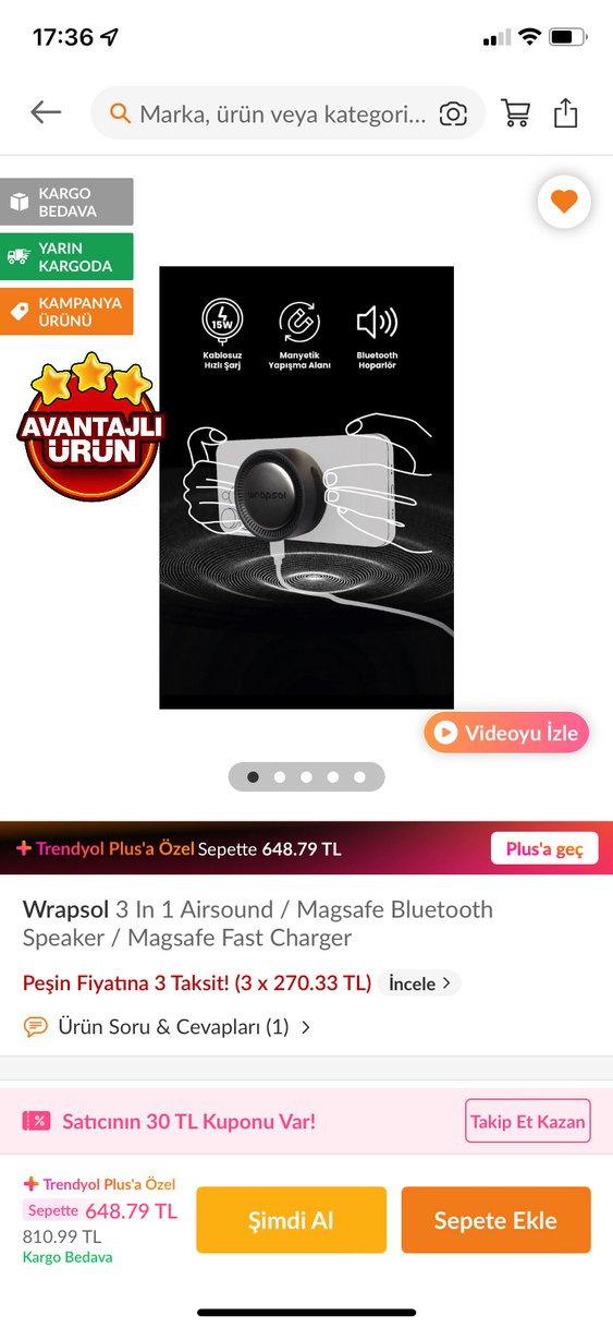 Wrapsol 3'ü 1 arada, 15W hızlı şarj, manyetik bağlantı ve Bluetooth hoparlör özelliklerini şık siyah tasarımda sunar. Ürün kutusunda açılmamış sıfır ürün