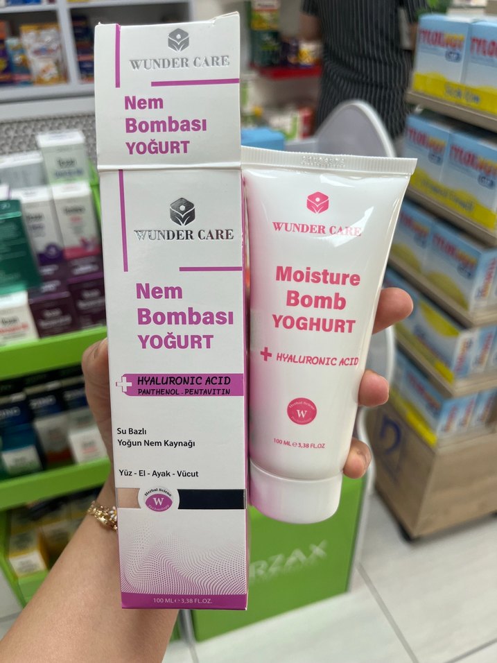 Wunder Care Nem Bombası Yoğurt, hyaluronik asit ve pantenol ile yoğun nem sağlar. Yüz, el, ayak ve vücut için uygundur. Derinlemesine nemlendirme sunar.