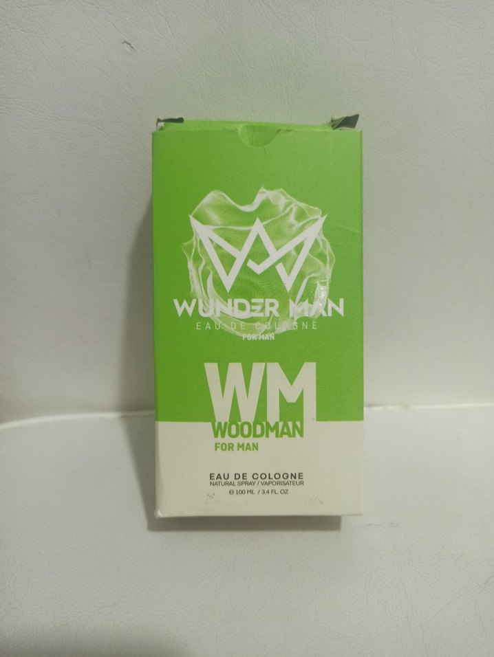 Wunder Man Woodman erkek kolonyası, 100 ml. Yeşil ve beyaz kutuda ferah bir koku sunar.